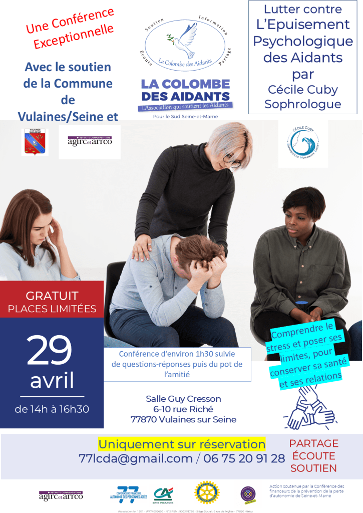 UNE CONFERNCE SUR LE STRESS ET L’EPUISEMENT DES AIDANTS à Vulaines/Seine le 29 Avril