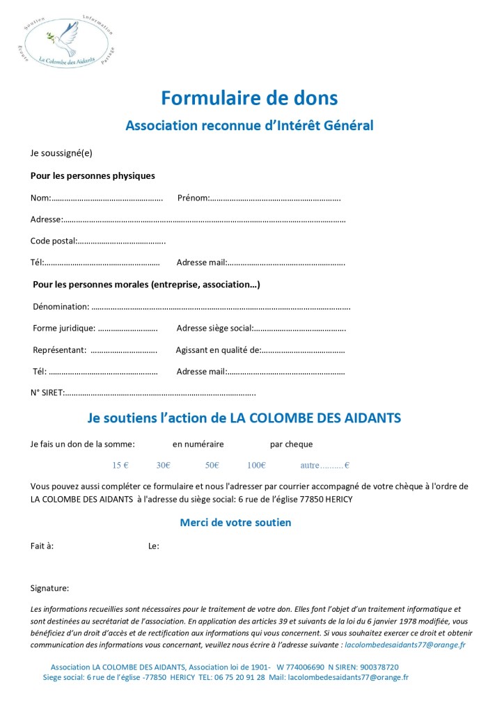 ASSOCIATION LA COLOMBE DES AIDANTS