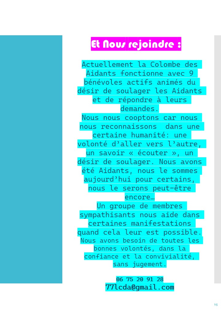 ASSOCIATION LA COLOMBE DES AIDANTS